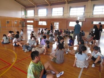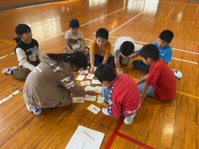 3年生は、体育館で、外国語と国語の学習を行いました。2校時の外国語では、グループに分かれて自己紹介をした後、アルファベットの歌とゲームに取り組んでいました。3校時の国語では、それぞれが事前に作成していた「ことわざかるた」を使って、かるた取りに楽しく取組んでいました。
