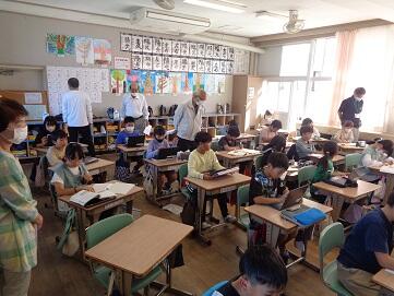 授業参観では、子供たちが楽しく授業に取り組んだり、一人一台端末を使って学習したりしている様子が見られ、委員の方も子供たちの頑張りを喜んでいらっしゃいました。