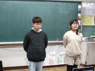 今回の始業式もMeetで行いました。3名の児童が発表しました。2年生の古川晴之さんは、国語の勉強と挨拶、トイレのスリッパ並べを3学期頑張りたいこと。そして、3年生での頑張りたいことも発表しました。4年生の池田苺栞さんは、正しい姿勢を保つことと運動を頑張りたいこと。「下級生のお手本になります。」とも発表しました。6年生の福重夏初さんは、相手の気持ちを考えることと国語や算数の勉強を頑張りたいこととして挙げていました。そして「頑張った、やり切った。」と笑顔で卒業したいと発表しました。3人ともしっかりと目標が立てられていてよかったです。