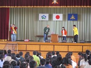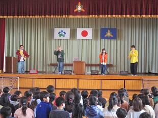 2月17日(土)に、高城総合体育館で行われる「ポケットの中の夢」に出演される「じゃーんず」のメンバーの方が、15日(木)来校されました。