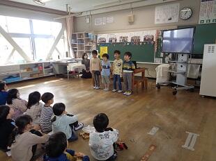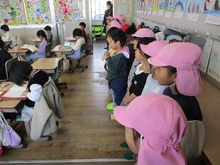 1年生にとって来年度入学してくる幼稚園生との交流は楽しい思い出になりました。今から4月に入学してくるのがとても楽しみです。