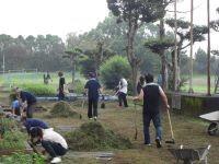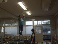 夏休み中、運動場の芝や草などが伸びている場所の草取りや草刈り、溝にたまった土の除去、教室の扇風機清掃をしていただきました。
