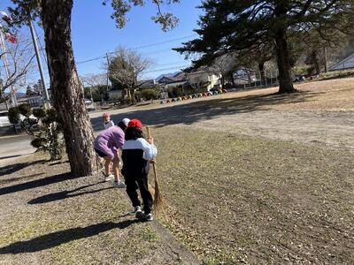 寒い中、がんばって落ち葉を中心にみんなで掃除していました。