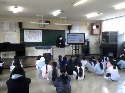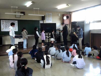 2・3年生は、自分ができたことなどを振り返って作文で発表し、合奏の発表をしました。