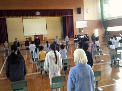 中学生が小学校に来て、それぞれで交流して小学校6年生、中学校3年生とのお別れをします。