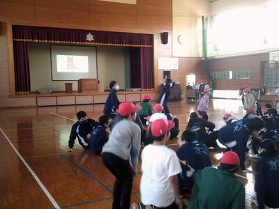 小学校は「もうじゅうがりにいこうよ」をしました。