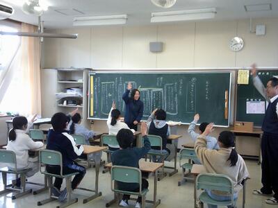 3・4年生は、まずは指体操から「いいことってどんなこと」を読んでいただきました。