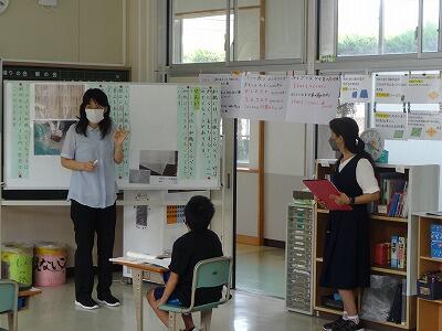 5年生のクラスで国語の研究授業が行われました。「世界にほこる和紙」という説明文を使って、本文を短くまとめていくという学習内容でした。中心となる語や文を使って短くまとめていました。