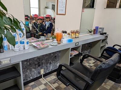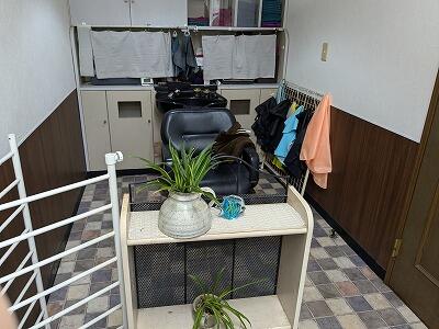 シャンプー台でしょうか。いろいろ質問しました。記念写真です。