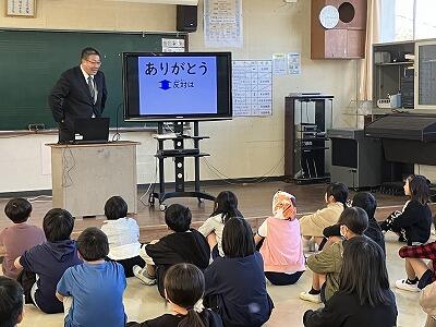 代表のお友達が、「有水小学校はとてもいい学校です。」とあいさつしてくれました。