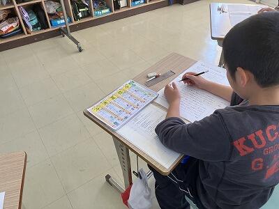 「かっこいい4年生を目指して」という題で、かけ算九九を家で何度も練習したこと、わり算ができるようになってうれしかったこと、5年生としての仕事を頑張りたいことを発表してくれました。