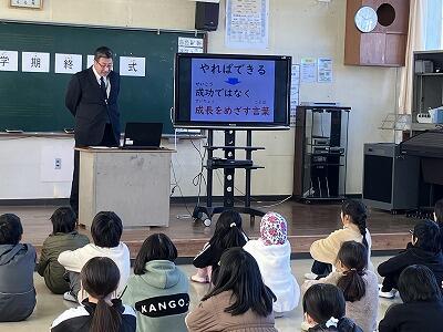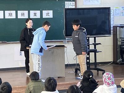 そして、校長先生から、各学年の代表の人に終了証が渡されます。