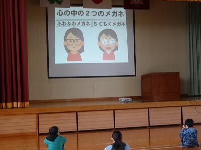 12月の全校朝会のテーマは、「心の中の2つのメガネ」についてでした。「ふわふわメガネ」と「ちくちくメガネ」。同じものを見ていても、捉え方によって大きく変わってくるという話しでした。子どもたちだけでなく、わたしたち大人にとっても大切な考え方だと感じました。