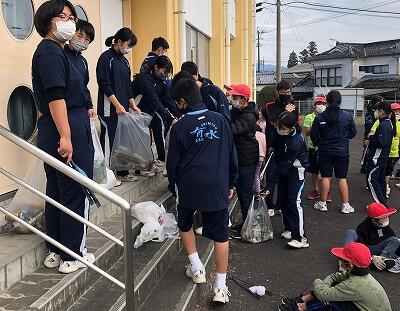 12月9日(金)に小中合同での「クリーン作戦」を行いました。学校周辺の美化活動(ゴミ拾い等)を通して、有水地区を大切にする意識を高め、環境美化作業をしようとする態度を養うことを目的としています。全国の学校のこのような取組が、「サッカーワールドカップ」での日本人サポーターによる競技場のゴミ拾い活動につながっているのではないかと考えます。
