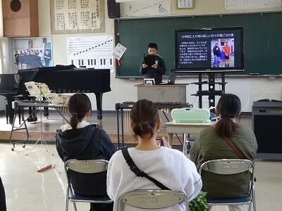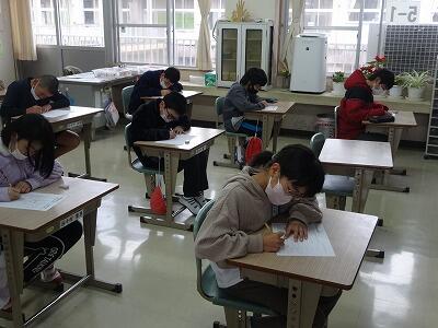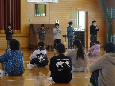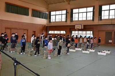 3月23日の卒業式に向けての練習が始まりました。卒業生7名、在校生40名ですので、全員参加での式になります。朝の時間を使って、全校で歌の練習をしました。曲目は、「また会う日まで さようなら」です。本番に向け、しっかりと歌いこんでいきます。