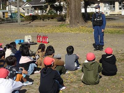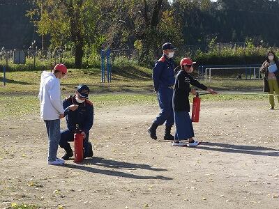 火災発生時に迅速で安全に避難できるために、火災を想定した避難訓練を行ないました。今回は、理科室で火災が発生した設定で、非常ベルの後、放送を聞いて、静かに素早く運動場に避難しました。その後は消火器を使った消火訓練を行ないました。みんな真剣な表情で取り組んでいました。