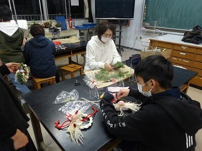 小中合同家庭教育学級で、「しめ縄・クリスマスリース作り」を行いました。40名近い参加者が集まり、専門の方から作り方を教わり、一つ一つ丁寧に作って行きました。どちらも、素敵な飾りが完成していました。きっと、クリスマス・年末年始を華やかにしてくれることと思います。