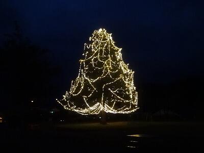 有水小の校庭にイルミネーションが登場しました。校庭にある大きなもみの木に今年も「有水おもてなし隊」の方々が中心となって設置してくださいました。寒い中での作業、本当にありがとうございます。