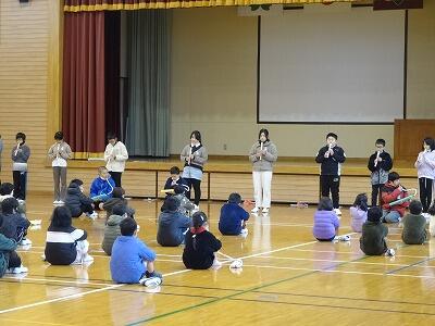 健康増進・体力向上の取組として、なわとび大会を行いました。大会では、短縄を使っての一分間跳び、各学年の代表による技の紹介、クラス対抗の長縄8の字跳び、有友チームによる全員跳びなどに挑戦しました。三学期になって取り組んできたこれまでの練習の成果を発揮し、みんなよく跳べるようになっていました。