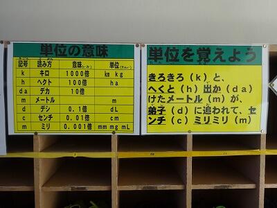 2月に入り、新たな「トナえもん」が掲示されました。今回のテーマは、「単位を覚えよう」です。子どもにとっては、ちょっと苦手な分野かもしれません。そんな単位の意味を覚えやすくするために、校長先生が、1つの文にまとめてくださっています。さて何人の子どもたちが上手に唱えられるようになるでしょうか。楽しみです。