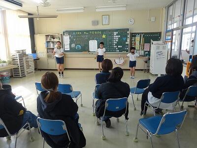 今年度最後の授業参観が行なわれました。今年一年頑張って取り組んできたことを保護者の方々に見てもらおうと、みんなはりきっていました。合奏や、縄跳び、総合学習の発表など、成長した姿がたくさん見られ、保護者の方も熱心に参観されていました。