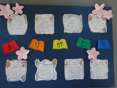 今年度最後の読み聞かせが行われました。月曜日の朝の活動の時間に行われる本の読み聞かせ。いろいろな本との出会いがあり、子どもたちにとって、素敵な一週間が始まります。ボランティアの方々には、朝の慌ただしい時間帯に学校に来ていだたき、子どもたちのために活動してもらい、本当に感謝しております。子どもたちからも、最後にお礼のメッセージをプレゼントしました。