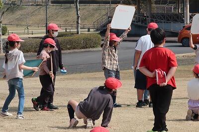 お別れ遠足が行われました。まず、はじめに、こども園・小学校・中学校の児童・生徒が集まってお別れ集会を行いました。集会では、前半が5年生企画、後半が中学生企画でゲームをして過ごしました。いろいろな年齢の子供たちが楽しく遊ぶ姿はとても微笑ましいです。終了後、小学生は、石山観音池公園に移動し、ここでも思い出作りとして、たっぷりたっぷり遊びました。天候にも恵まれ、素敵な1日となりました。