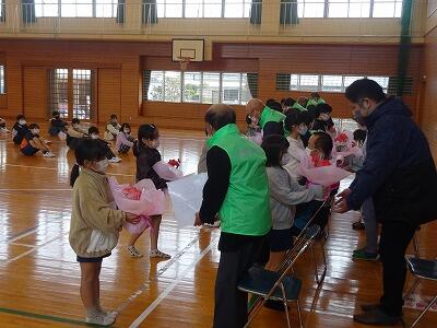 ボランティア感謝集会が行われました。日頃お世話になっている、見守り隊や読み聞かせの方を招待して行いました。お一人ずつ自己紹介をしていただいた後、6年生が代表でこの一年間のお礼の言葉を述べました。また、感謝の気持ちをこめて花のプレゼントをしました。