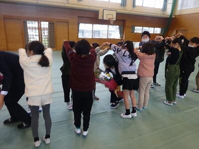3学期に入り、新たな有友チームが編成されました。校長先生から有友チームの意義についての話があり、その後早速、チーム対抗のゲームをしました。今回は「関所破り」というじゃんけん大会をしました。関所である先生のところに行ってじゃんけんをします。負けるとチーム全員で関所をまわることになり、寒い朝でしたが、体がぽかぽかするゲームとなりました。1年生から6年生まで、笑顔いっぱいの時間となりました。※最後に掲載されているチームは、今回の優勝のメンバーです。