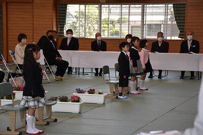 令和5年度の有水小学校入学式が行われました。音楽に合わせて元気に入場した後は、校長先生から教科書を授与してもらったり、在校生から歓迎の言葉をもらったりしました。かわいい姿にみんな心がほっこりでした。有水小学校 45名で、スタートです。