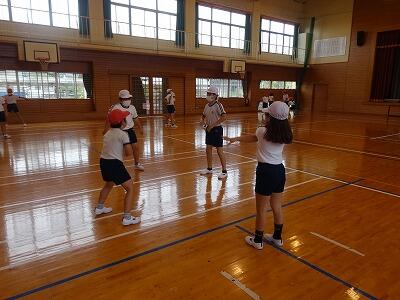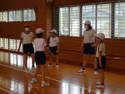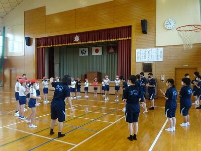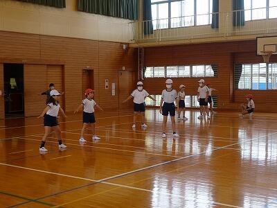 スポーツフェスタに向けて、練習が始まっています。表現では、3年生から6年生までで、ソーラン節を踊ります。昨年踊った高学年児童が中学年児童に教えています。グループごとに分かれて、腕の伸ばし具合、足の曲げ具合など、丁寧に教えていました。微笑ましい光景に、心がほっこりしました。