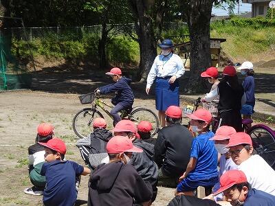 「交通のきまりや自分の命を守る方法を知る等」をねらいとして、交通安全教室を行ないました。今回は、交通安全協会の方に来ていただき横断歩道の渡り方や自転車の点検の仕方等を一つ一つ丁寧に説明していただきました。後半は、実際に自転車に乗り、設定されたコースを運転し、正しく運転出来ているか確認をしていだたきました。これからも命を守るために、しっかりと安全確認をしていってほしいと思います。