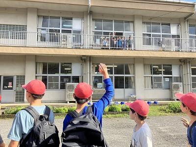 1・2・3・4年生や先生方、保護者の方でお見送りです。