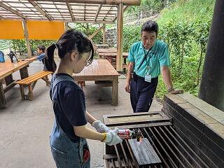 昼食後は、奉仕活動として、エントランス等の清掃を行い、荷物を整理して終了式を行いました。式では、初めに追跡ハイキングの表彰が行われました。優勝した班には、けやきでつくられた記念の優勝メダルが贈られました。素敵な思い出の品をありがとうございます。