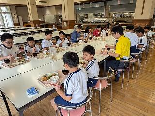 12時20分頃、五十市小と入れ替わりでレストランに入りました。みんな1つのテーブルで、おいしくいただきました。