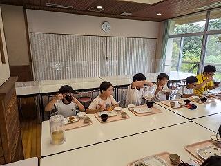 森のレストランで朝食です。品数が多く食べきれるかなと思いましたが、お腹がすいていたようでもりもり食べている子が多かったです。朝食後は、部屋の掃除をして部屋の点検も行われました。