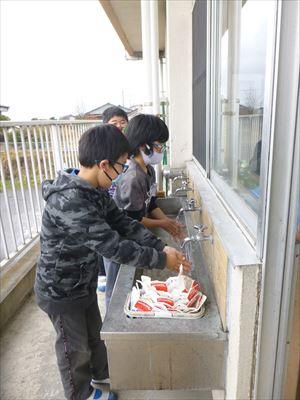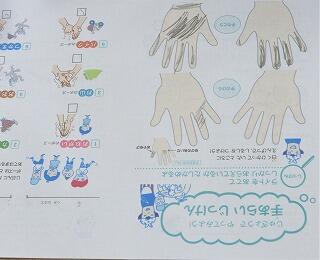保健室の先生が1年生と2年生の学級で、正しい手洗いのしかたについて教えてくださいました。