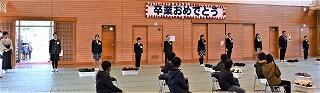 在校生みんなで、お祝いの言葉を歌とパフォーマンスで紹介しました。