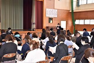 体育担当の先生からは、「おはしとふく」を合い言葉に、水泳学習で守ることを話されました。