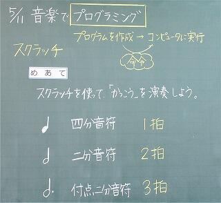 スクラッチというソフトを使って、「かっこう」の曲が演奏できるようにしていきました。