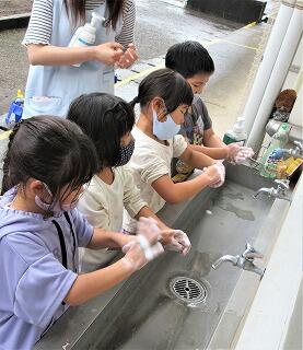 子どもたちは、汚れが落ちていないことに気づき、手洗いをもっとていねいにしますと発表していました。