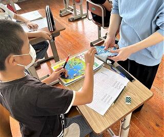 分からないとき、自分の考えを確認するときに、ノートパソコンにあるヒント(「算数おたすけboard」)を使っていました。このようなパソコンの使い方もあるんですね。