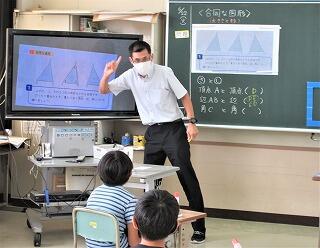 5年生の算数の授業(「合同な図形」)を先生方が見にこられました。
