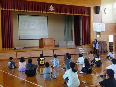 10月の読み聞かせ活動がありました。今回もボランティアの方に来ていただき、各教室で読み聞かせをしていただきました。朝から、素敵な時間を過ごせ、一週間のスタートが気持ちよく始まりました。子どもたちも嬉しそうでした。特に高学年は、英語の本の読みかせがあり、いつも以上に興味をもっていました。読書の秋、たくさん本にふれ、心に栄養をおくってほしいですね。