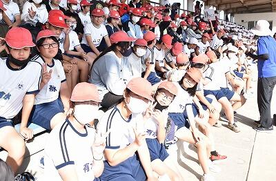コロナ禍でしばらく中止していた「陸上運動教室」が久しぶりに開催されました。天候にも恵まれ、市内の6年生が一同に集まり、各競技で力を発揮し、入賞を目指して頑張っていました。また、競技を頑張る友達への応援も精一杯おくっていました。