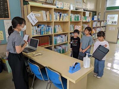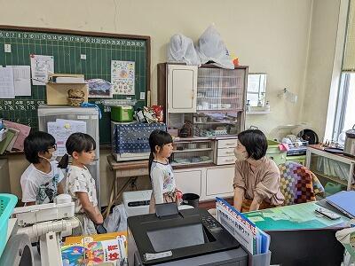 今年も読書活動の取組の1つとして、図書館イベントで、読書スタンプラリーに挑戦しています。たくさん読書に取り組んだ児童にはなんと特典が。その特典は、校長先生の椅子に座れるという「お楽しみ券」です。手に持ったお楽しみ券を自慢げにみせてくれました。ふわふわの椅子に座って校長先生になった気分の子供たちの顔はニコニコでした。