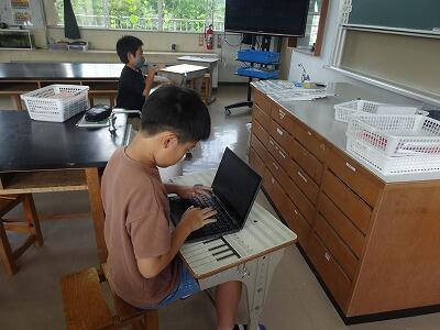 1日(火)の夏休みの学校は登校日でした。久しぶりに学校に活気が戻ってきました。やっぱり、学校は子供たちの元気な声と笑顔が似合います。ただ、今県内ではまた、コロナウイルス感染が再拡大していることもあり、予定していた全校朝会は行なわず、各学級での話・指導となりました。教室では、夏休みの課題や過ごし方についての確認をしました。その後は、ラジオ体操をして体を動かしたり本の借り換えや花壇の草取り等をしたりしました。そんな中、5・6年生は、台風接近に伴い、外にあるぞうきんや植木鉢等の片付けしてくれました。自主的な取組に頼もしさを感じました。さすがです。