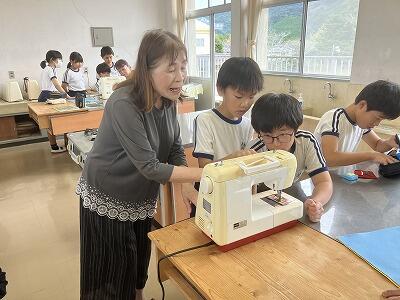 今回は、5・6年生のミシン縫いのお手伝いに、地域の方の協力をいただきました。