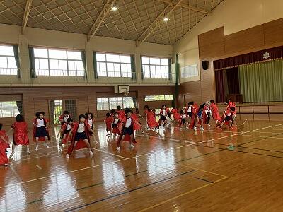 2年生や3年生が一緒に手拍子をしながら、一つずつ教えていました。