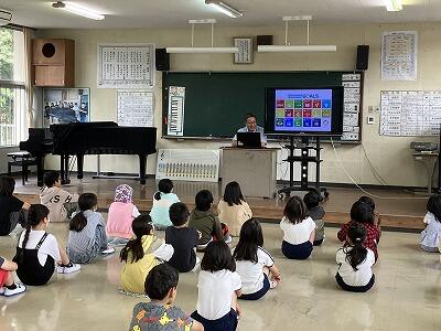 ・猫の二重奏は動きもあって内容がよく分かり、児童も聴き入っていました。「僕のこと」「虹」を子どもたちと大きな声で一緒に歌い、楽しそうでした。